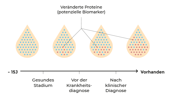Mit Hilfe unseres Plasmapools, einem der weltweit größten Pools mit über 100 Millionen Proben, die in fast 15 Jahren gesammelt wurden, untersuchen wir bisher vorliegende Probensätze, um bereits sehr frühe biologische Signale in Plasmaproteinen zu erkennen, die auf die allerersten Anzeichen der Krankheit hinweisen können, noch bevor Symptome auftreten. Diese Forschungsinitiative könnte zu neuen Möglichkeiten der Diagnose und Behandlung dieser Erkrankung führen.