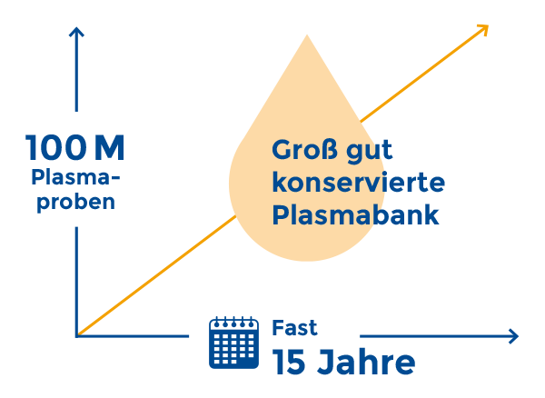 Mit mehr als 100 Millionen Proben ist das Plasmaproben-Archiv von Grifols eines der größten der Welt. In Kombination mit Daten aus der Praxis erfassen sie Tausende verschiedener Krankheiten und Krankheitszustände und weisen wahrscheinlich Proteinveränderungen im Plasma auf, die frühe Anzeichen einer Krankheit zeigen.