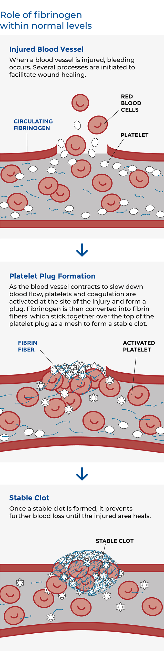 Fibrinogen is a blood plasma protein made in the liver that is involved in coagulation and wound healing. When the concentration of this protein in a person’s plasma falls below a critical level or when it does not function properly, the ability to stop the bleeding is compromised.